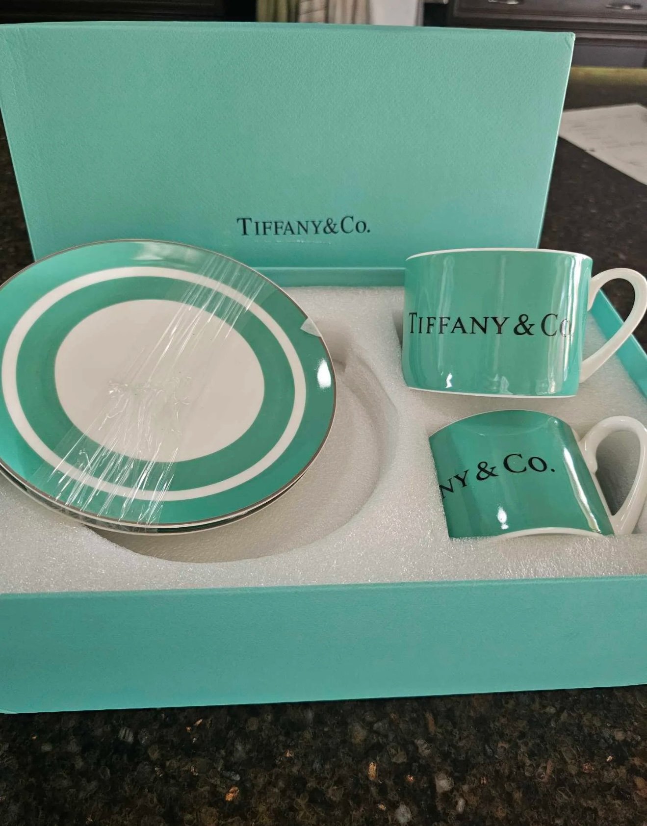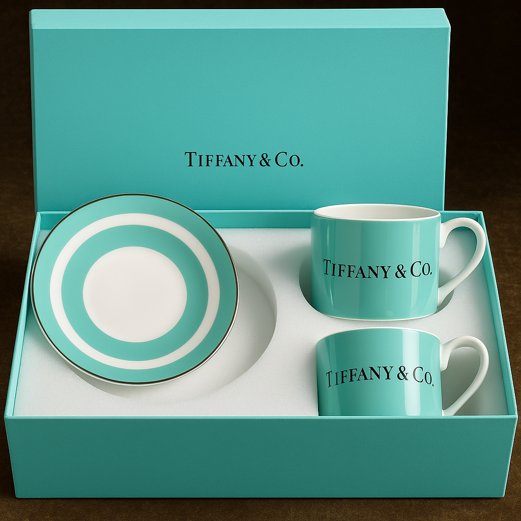 Experience refined luxury with this exquisite Tiffany & Co.–inspired cup and saucer set, beautifully presented in the signature Tiffany blue box. Each piece features classic turquoise and white banding with clean, minimalist branding that highlights the iconic style Tiffany is known for. Crafted with smooth, high-quality porcelain and a glossy finish, the set feels both modern and timeless — perfect for collectors, gifting, or elevating your morning coffee ritual. Whether displayed or used daily, this set adds a touch of sophistication to any home and makes a stunning gift for those who appreciate elegance and thoughtfully designed tableware.